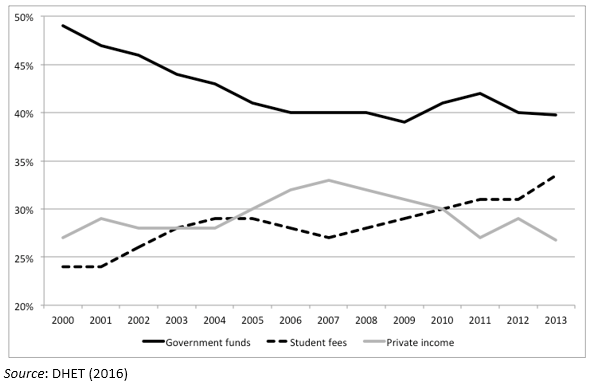 The #FeesMustFall campaign of 2015 has placed the financing of higher education at centre stage in the country’s political arena. Students complain that student fees have increased at rates higher than consumer price inflation. This has indeed been the case from 2009 to 2015, with the rate of fee increases exceeding consumer price inflation by two percentage points on average.