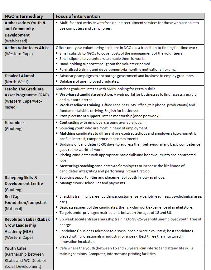 Jobs for unemployed youth: obstacles and intermediary support provided