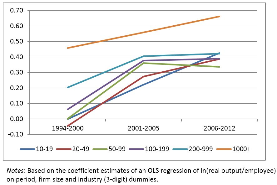 Figure 3. Real labour productivity of different sized firms