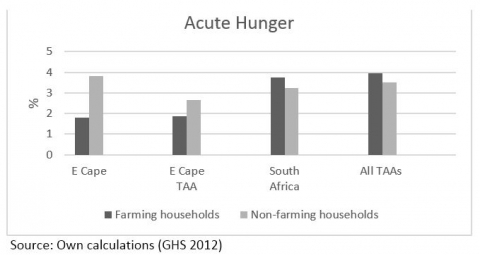 Debates about rural poverty and development often tend to focus on the proper or potential role of small-scale agriculture. Critics have gone as far as to suggest that provincial governments should remove support for agricultural interventions aimed at the small-scale sector (see Sender 2014). We would suggest that, while the questions of whether household agriculture promotes growth, provides jobs or perhaps even whether it reduces poverty remain open, there does seem to be a clear link between agricultural production and food security among the poorest households in the Eastern Cape province. We might also note that, while long-term development strategies are still required for the rural parts of South Africa, food security is an immediate concern and one that has long-term implications for those that suffer from frequent hunger and malnutrition.