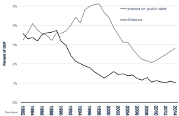 Figure 4: Spending on defence and interest payments (1982–2014)