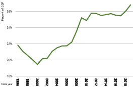 Figure 1: Main budget core spending (1996–2019)