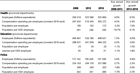 Table 1: Employment and compensation trends in health, education and policing