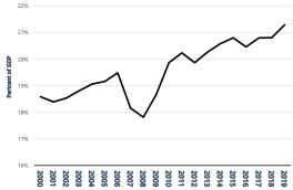Between 2011 and 2017, consumption spending by provincial departments has been stable as a share of GDP, and its rise since 2017 is largely explained by the slowing of GDP growth. Remarkably, provincial departments spend significantly less on goods and services than they did a decade ago (as a share of GDP). Moderate growth in national government’s compensation spending has been offset by downward pressure on goods and services.