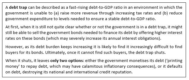 Whether the South African government is heading for a debt trap depends on whether the government will be able to serve the national interest and not yield to the demands of labour unions to not cut the government wage bill. Ultimately, there is no substitute for political will, leadership and agreement, both on the part of government and the trade unions, to avoid a debt trap.