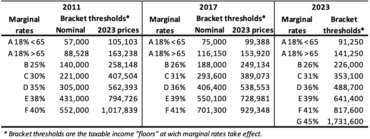 Over the 2011-2023 period, the tax threshold declined by approximately 13% in real terms.